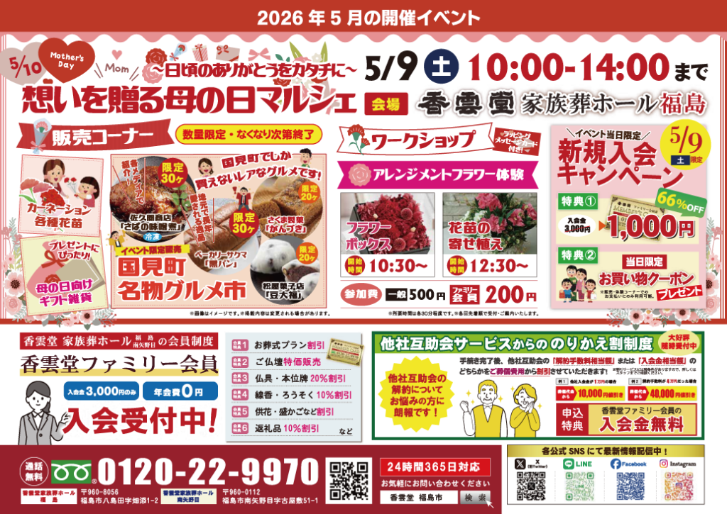 - 04月16日 13時00分家族葬香雲堂家族葬ホール福島