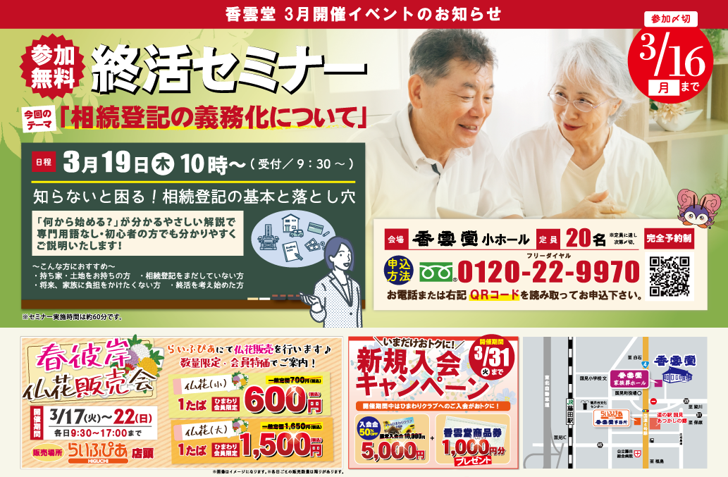 平素は格別のご高配を賜り、厚く御礼申し上げます。 総合葬祭 香雲堂(こううんどう)ではこの度2025...