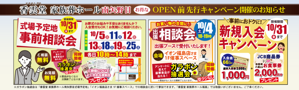 <福島>★2025.10 香雲堂(こううんどう)家族葬ホール南矢野目 OPEN前先行キャンペーン開催のお知らせ