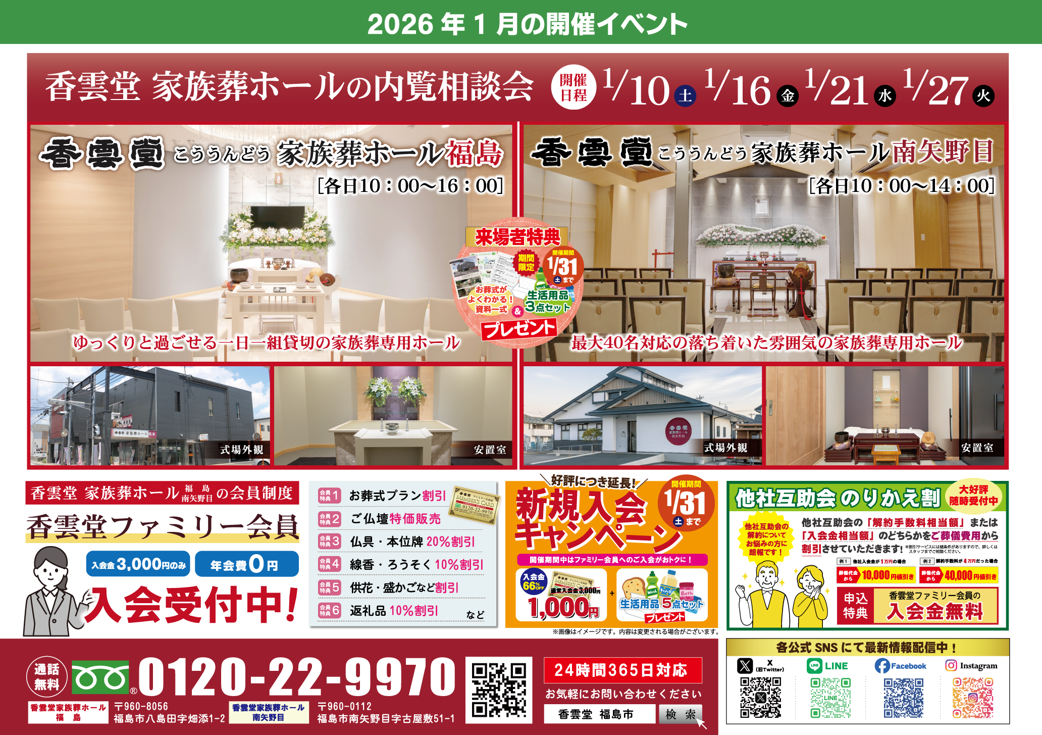<福島・南矢野目>★2026.1.6~1.31 各香雲堂(こううんどう)家族葬ホール内覧相談会開催のお知らせ