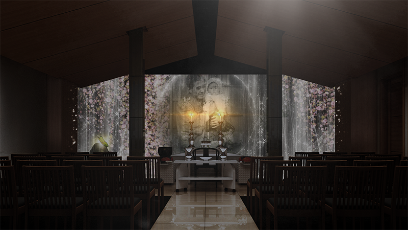 "光と想いが紡ぐ、こころのセレモニー。 思い出の写真や映像が、やわらかな光に包まれて浮かび上がります。 まるで、故人様がそこに微笑んでいるかのように──。 映像と音が織りなす穏やかな演出が、 ご家族の心に寄り添い、 「ありがとう」と「またね」の想いをそっと届けます。"
